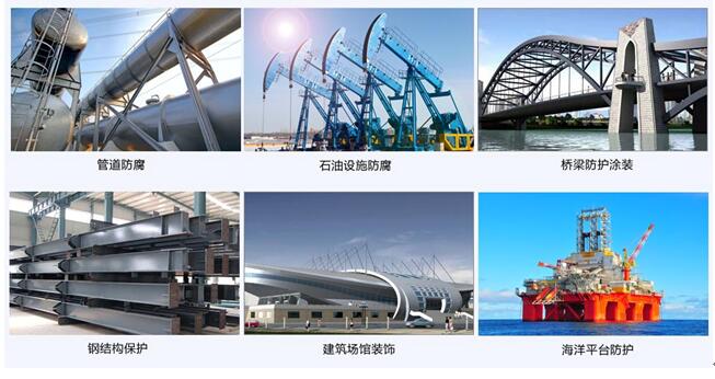 环氧云铁中间漆用于钢结构、建筑场馆、桥梁钢构、港口码头设施、工程机械、石化储罐、管道防腐等众多领域,主要配套环氧富锌底漆以及防腐面漆。